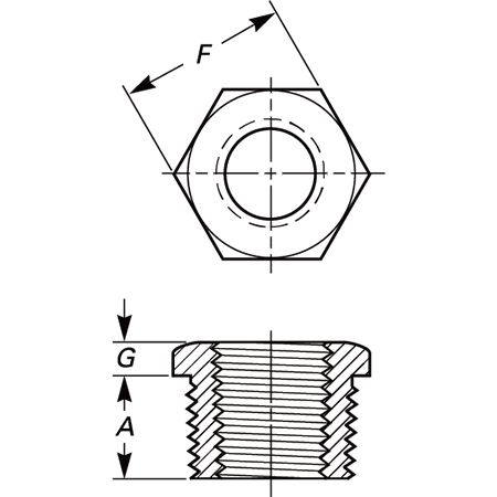 Short threaded cylinder for reducing pipe size — available as Flush Bushing or Hex Head Bushing.