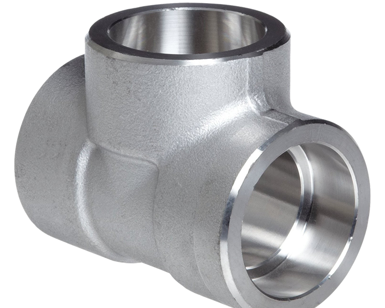 Forged T-shaped fitting for branching or connecting three pipes, including reducing tee configurations.