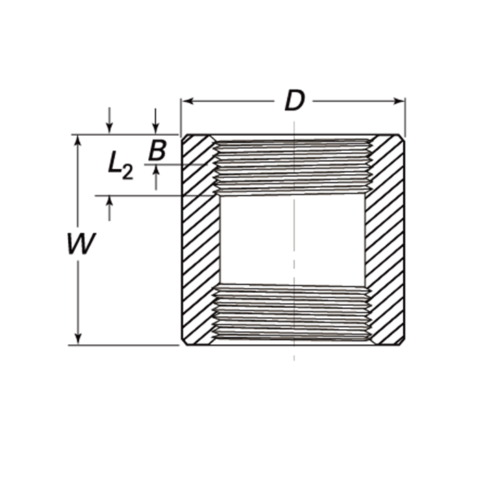 Forged fitting connecting two same-sized pipes with threaded or socket-welding ends for high-pressure systems.