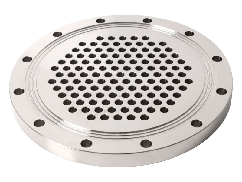 The tubesheet is a critical component in heat exchangers and boilers, providing mechanical support and anchoring for tubes. Manufactured from solid materials with precisely drilled holes.